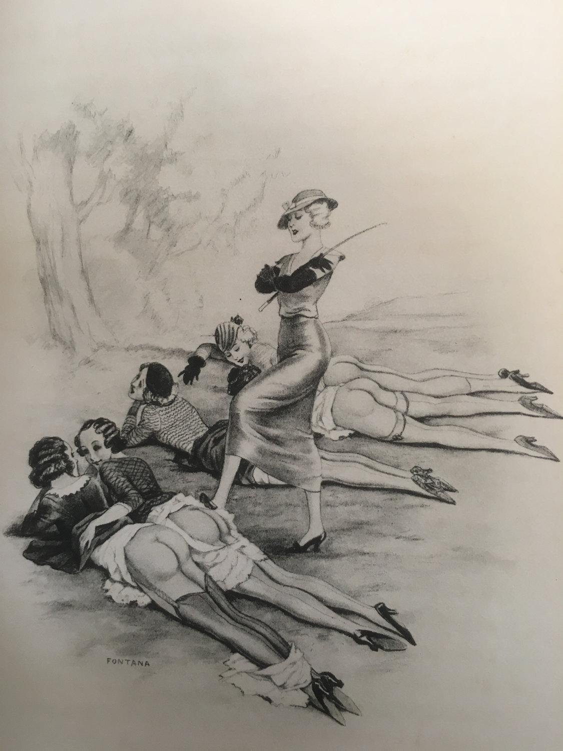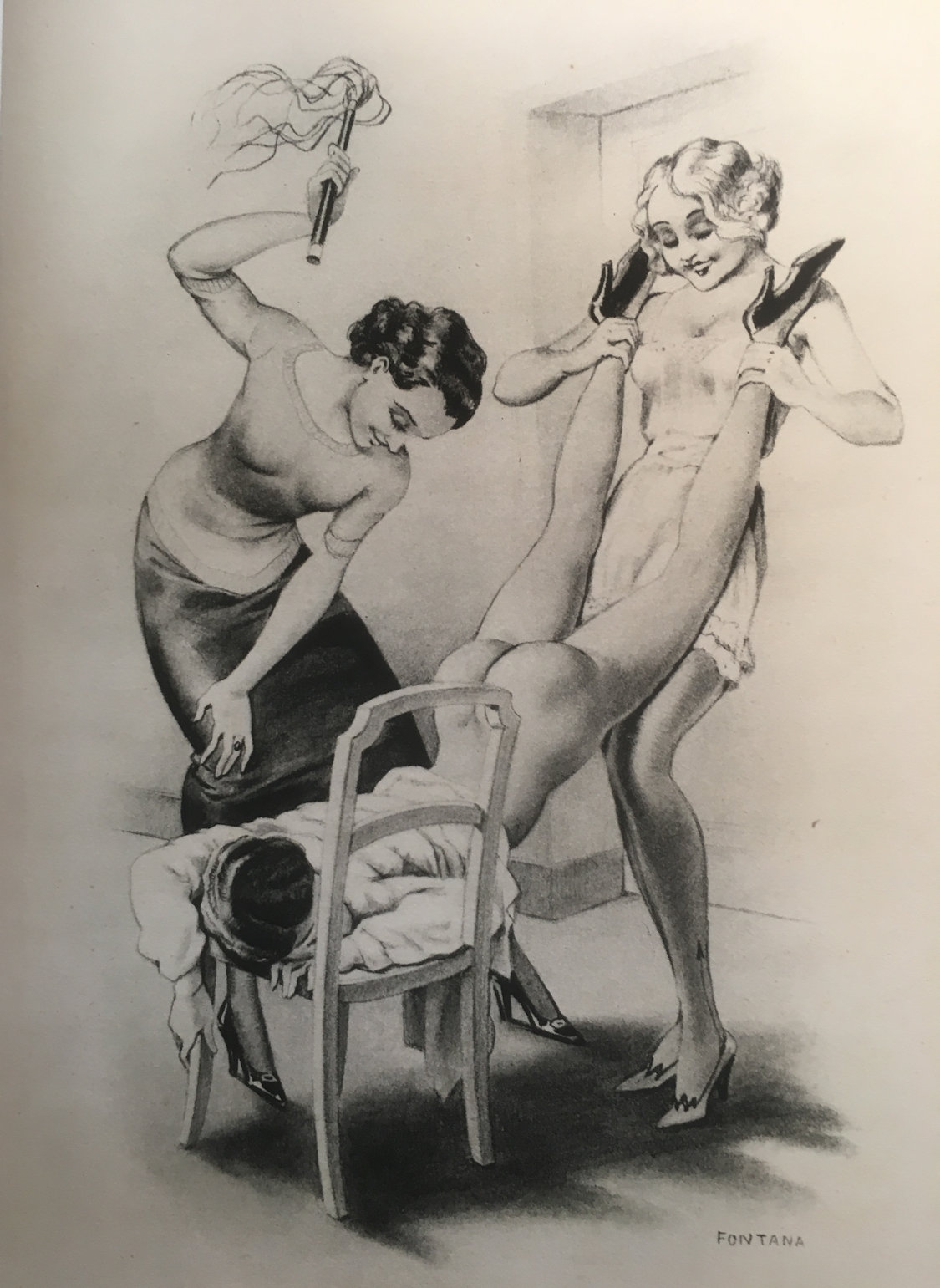 Minder bekend is dat Leo ook werkte als illustrator voor een aantal spanking boeken. De kunstenaar overleed in 1965, in Annecy (Frankrijk). Voor meer afbeeldingen van deze kunstenaar bezoek Vintage Bdsm Art.