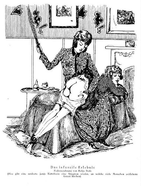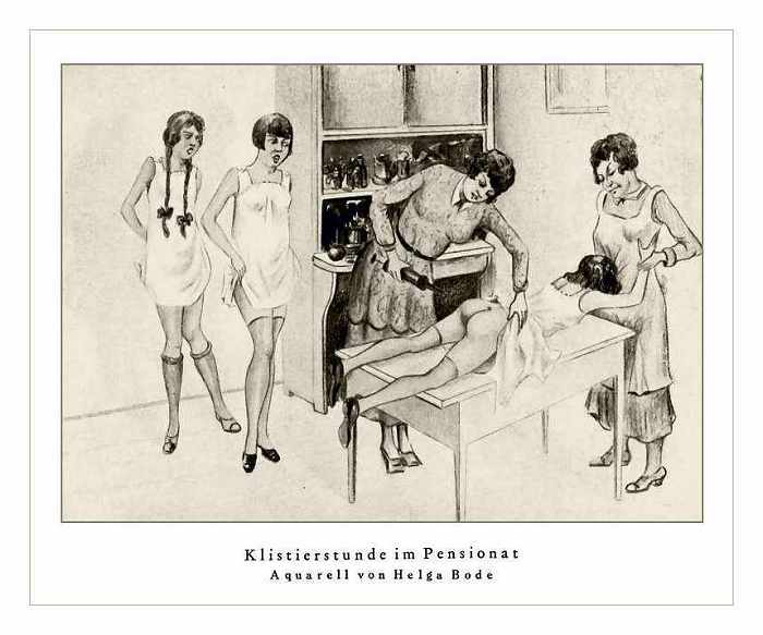Helga tekende fantasie verhalen rond het spanking en enema thema, vermoedelijk rond 1920.