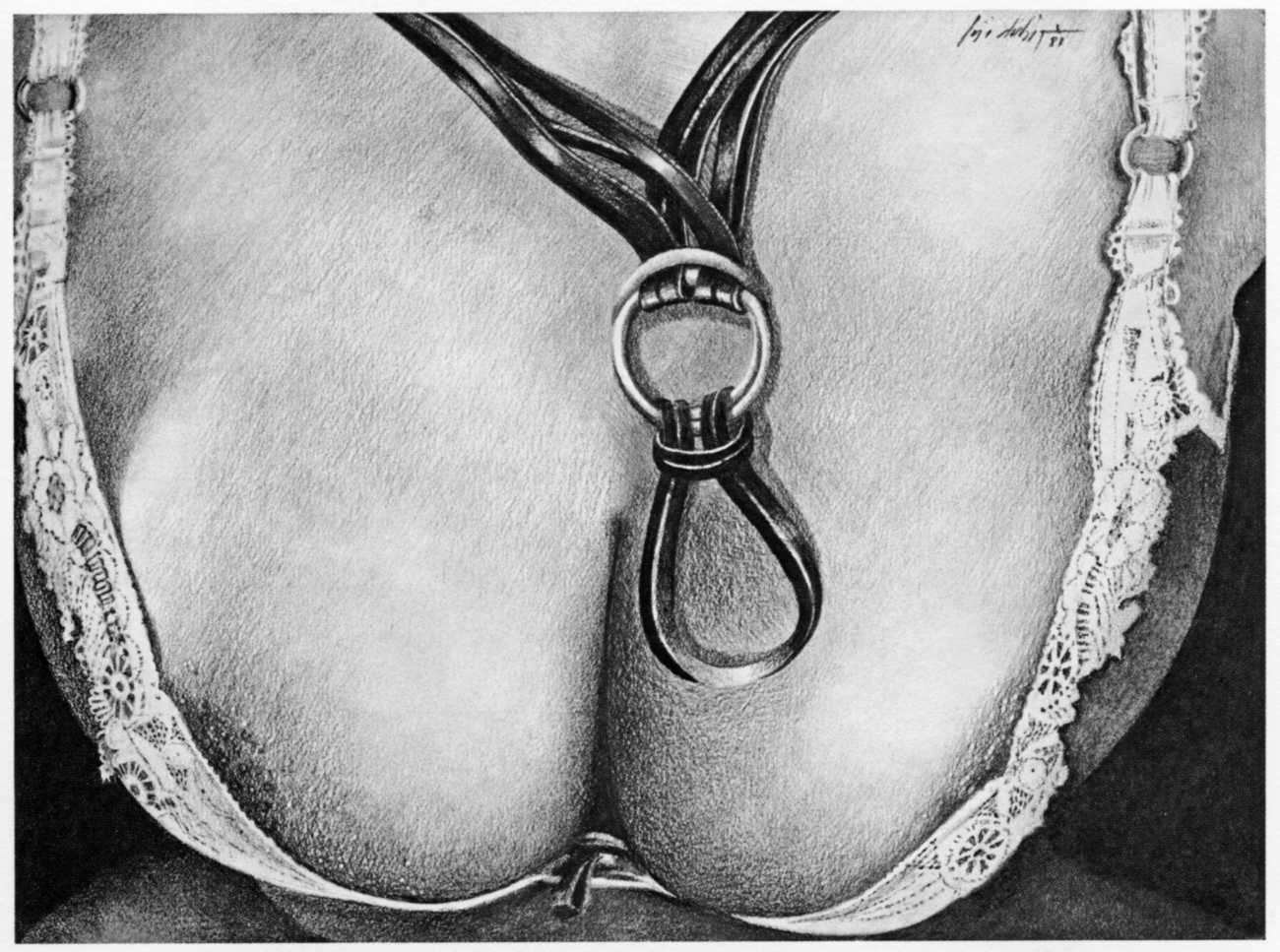 Bekijk hier een kleine selectie van zijn bdsm schetsen, een uitgebreide verzameling is te vinden op de website Honest Erotica. De boeken zijn soms te vinden bij Bol.com en worden ook geregeld aangeboden op veilingsites zoals Catawiki.