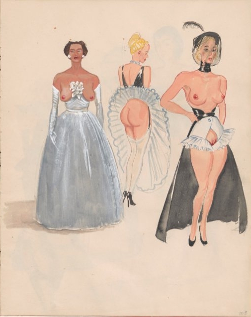 Hoewel Moesman bekend werd met schilderijen zoals Het Gerucht (1937) – een naakte vrouw op een fiets die in de jaren ’40 flink wat opschudding veroorzaakte – zijn het vooral zijn schetsen die BDSM-liefhebbers aanspreken. In deze intieme tekeningen experimenteerde hij met thema’s als macht, onderwerping en erotische spanning. Vrouwen, vaak vastgebonden, gemaskerd of in uitdagende poses, domineren zijn werk. Touwen, leren accenten en een sfeer die balanceert tussen sensualiteit en sadisme: het zit er allemaal in.
